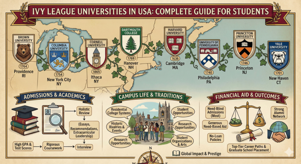 The Ivy League universities in the USA are among the most prestigious and competitive institutions in the world. Known for academic excellence, historic campuses, and powerful alumni networks, these universities consistently rank among the top globally. If you are searching for information about Ivy League universities in USA, this detailed guide will help you understand…